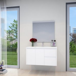 ארון אמבטיה תלוי דגם MATEO עם בוצ'ר כולל מראה עגולה