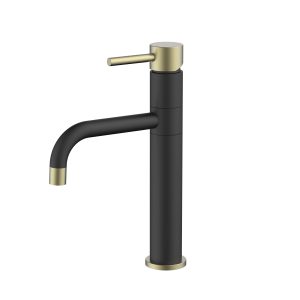 ברז פרח נמוך לכיור אינטגרלי פיה מסתובבת – שחור מט בשילוב זהב מט